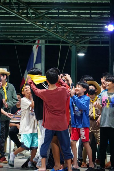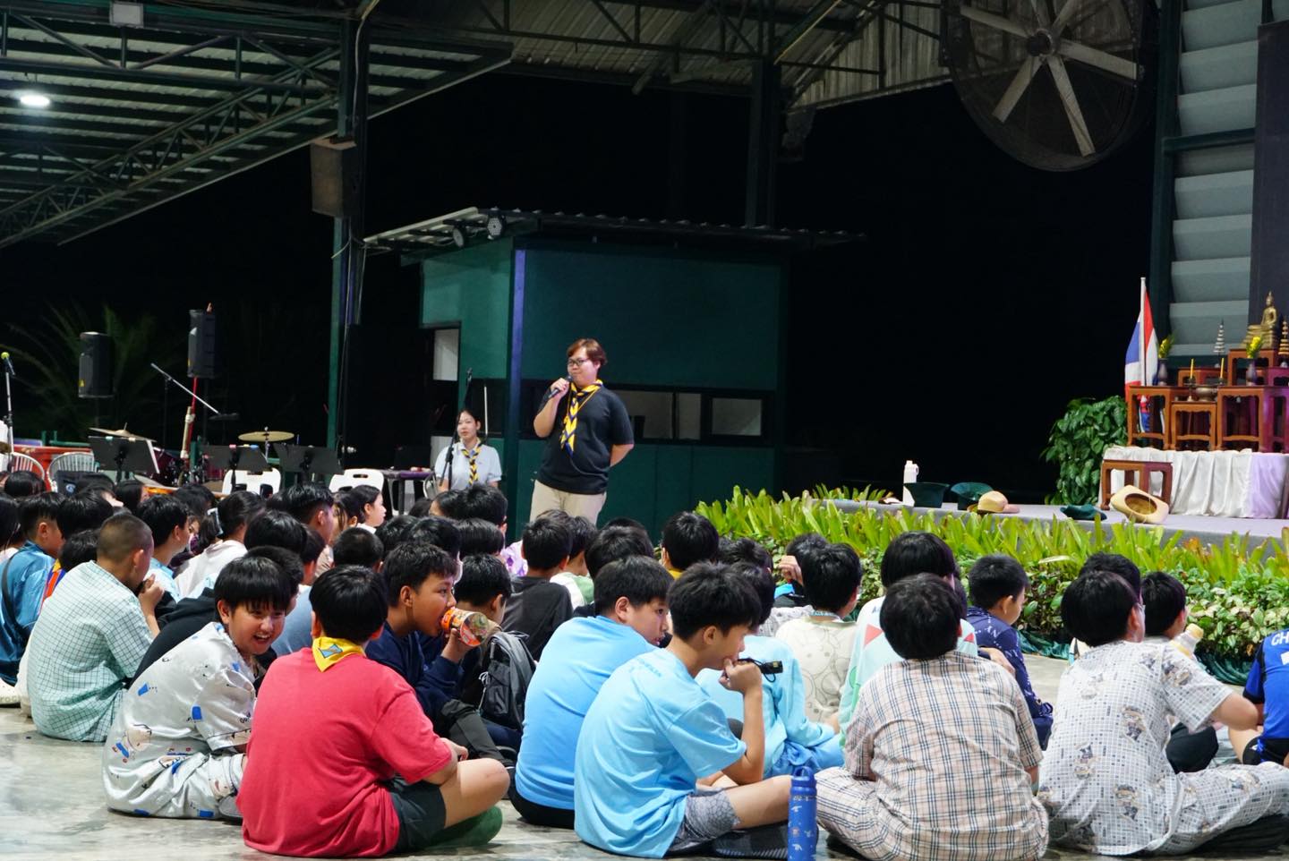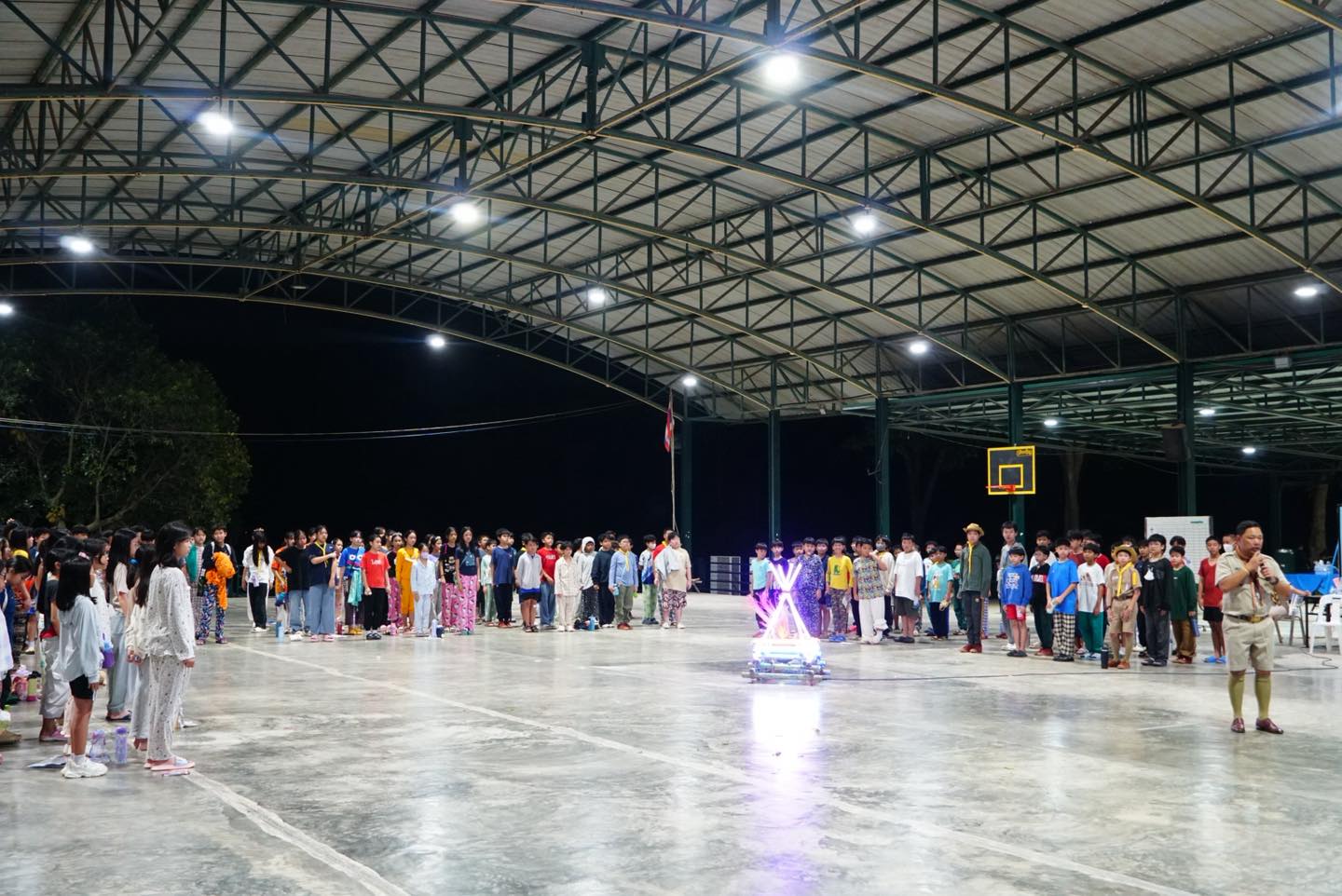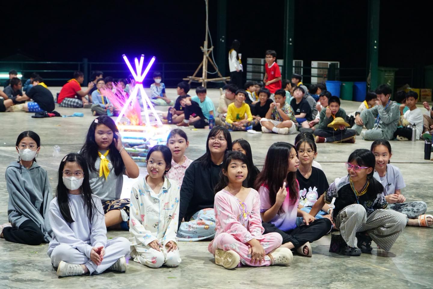 แสงไฟแห่งมิตรภาพ: ภาพบรรยากาศกิจกรรมรอบกองไฟในยามค่ำคืน เต็มไปด้วยการแสดงที่สร้างสรรค์และเสียงหัวเราะ